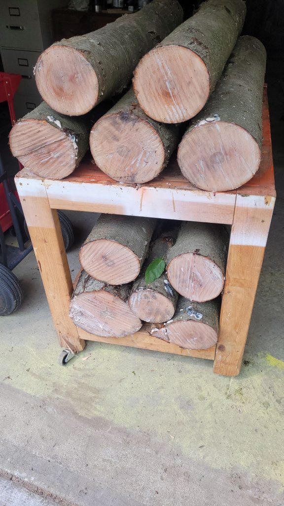 The BurcHowdy Shaft is making progress. There’s likely 10 to 15 test shafts in each of those black birch logs. The corner wheel folded when I rolled the entire tree on a cart into the garage.