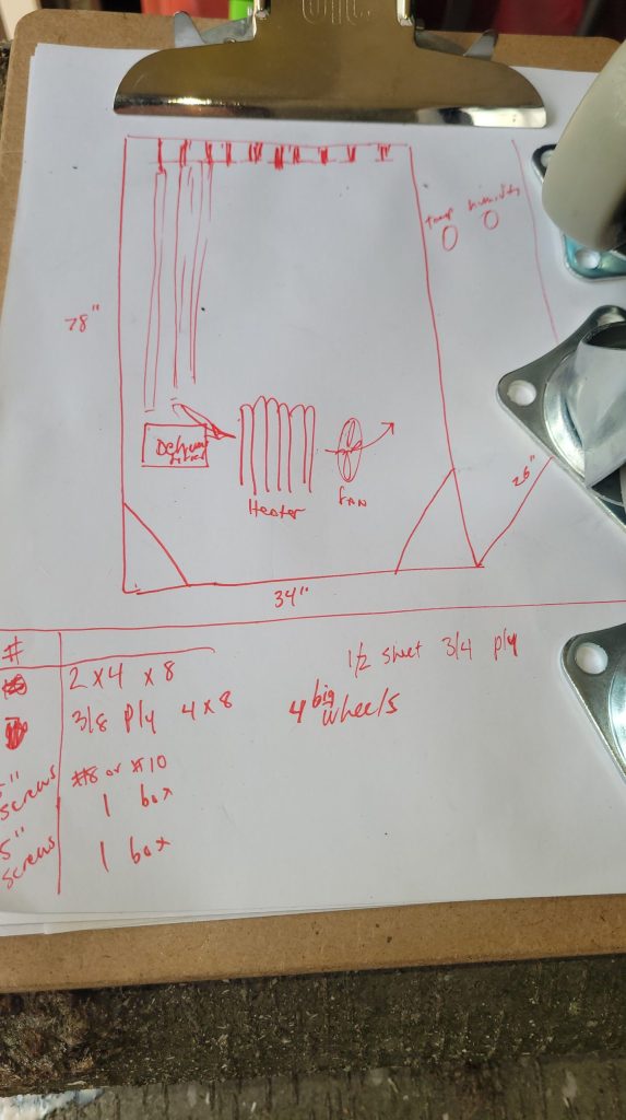 But before I can saw them I want a new slow heater/kiln to put them in, one designed for the purpose. It’ll have a heater, dehumidifier and fan, temp and humidity guages inside and the numbers will be automatically tracked. The shafts will hang vertically with plenty of room for air circulation.
