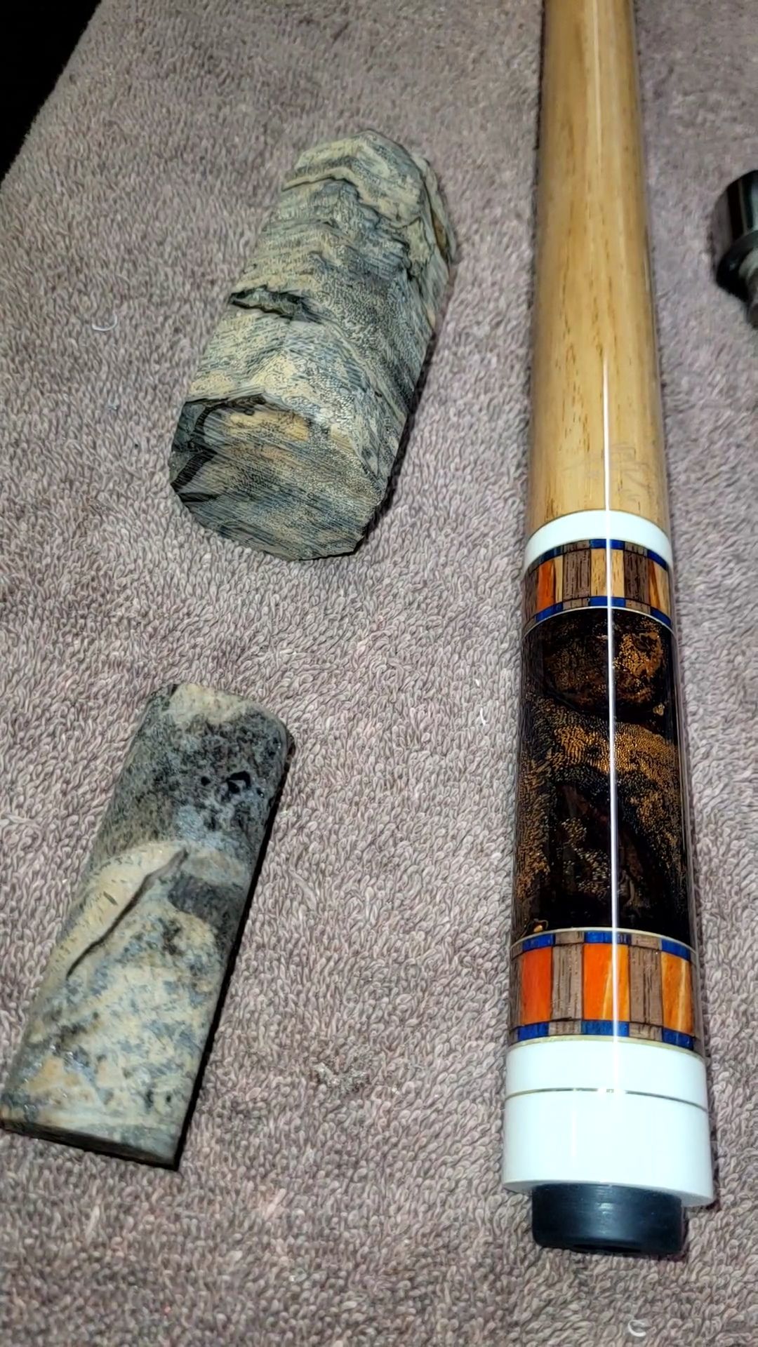 This is a rare butt. I’ve only made 4 with any toadstool in them; this has the most. First time for joint protectors made from toadstool. It shrinks a lot when being dried and stabilized, and due to the growth patterns the pieces I stabilized were unable to provide any large parts. I have one more piece of toadstool and I have Amish friends sourcing more for me . I hope to get some this fall, but I’m also fine with gems being rare.