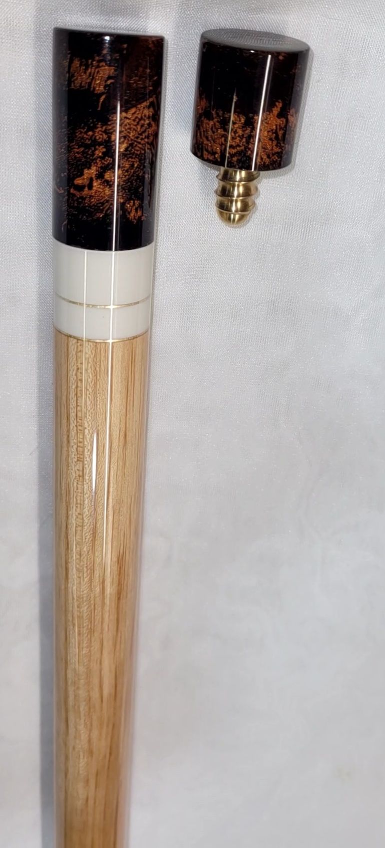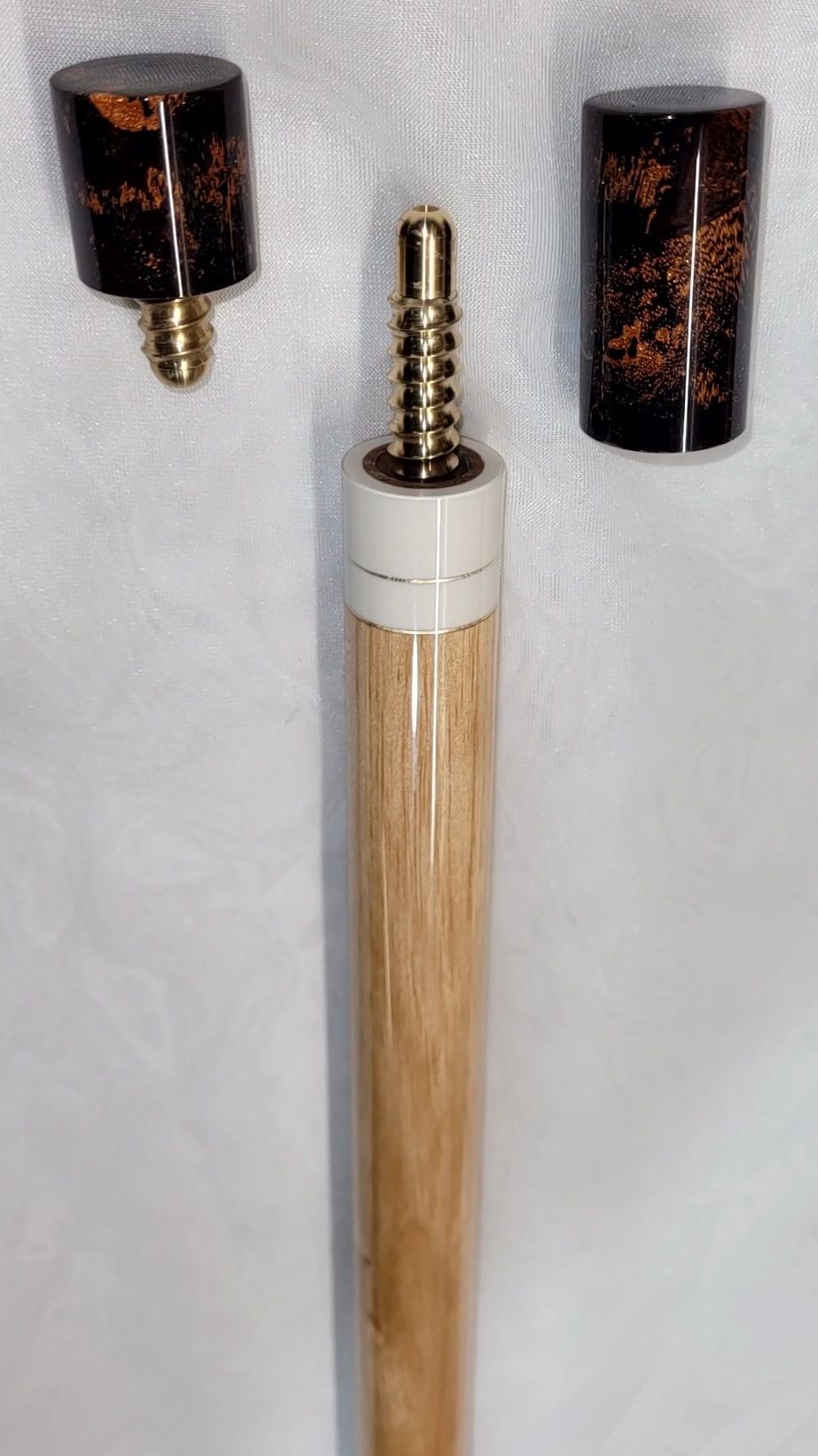 So the butt named Sir is a solid piece of hickory with slot rings and toadstool. Has a 2 ounce weight bolt in the butt that can be taken out and replaced with smaller increments, as well as an extension-accepting bumper (takes a 5/16-14 thread). Yes, I have another piece of toadstool that could form the basis of an extension. $450-$550 depending on length.