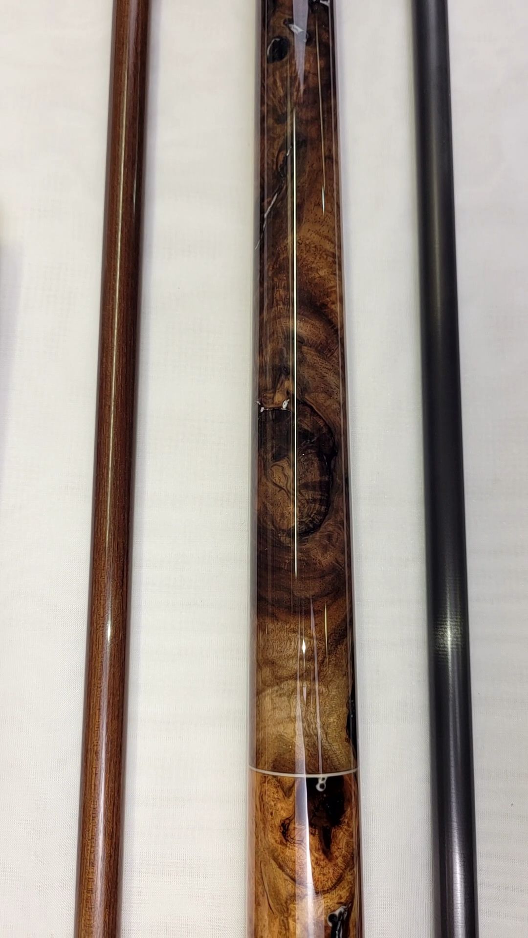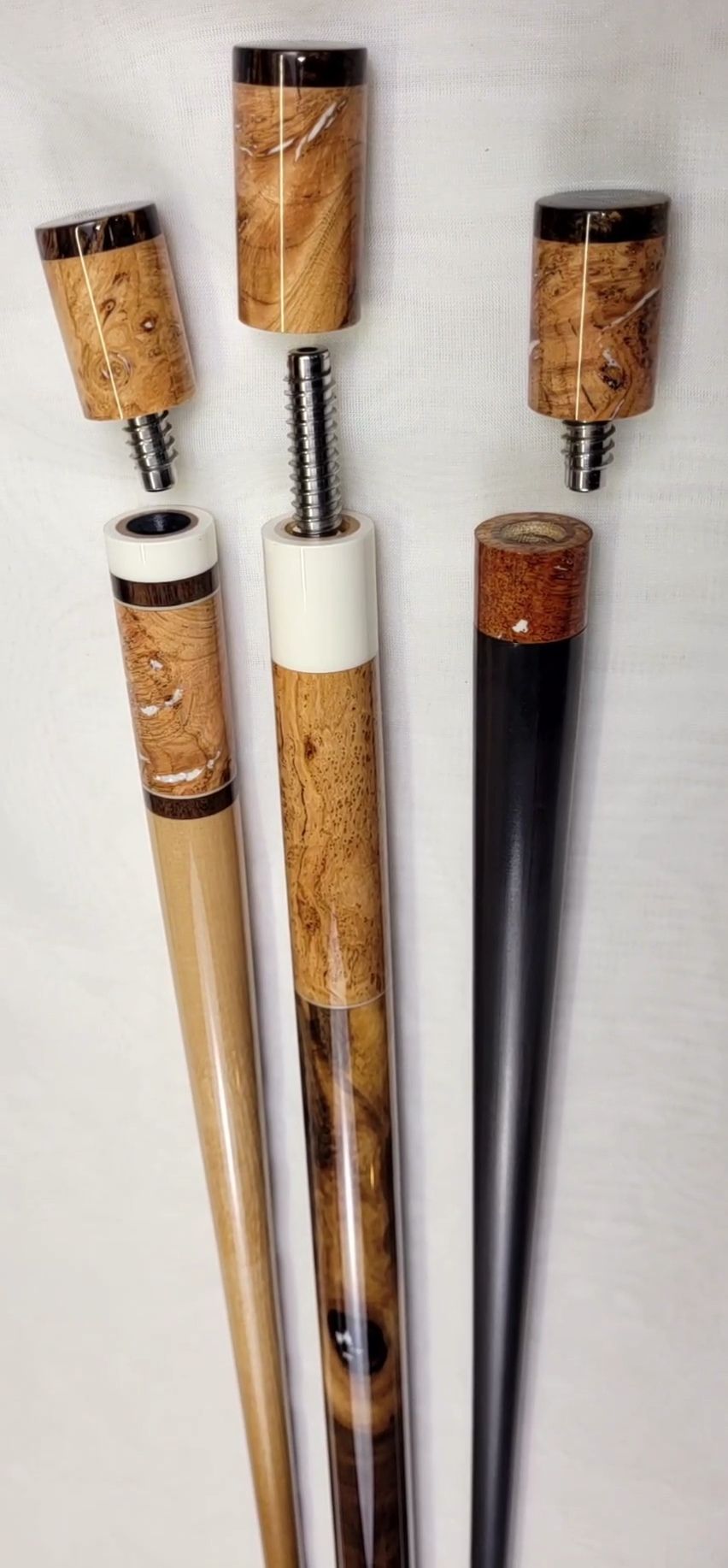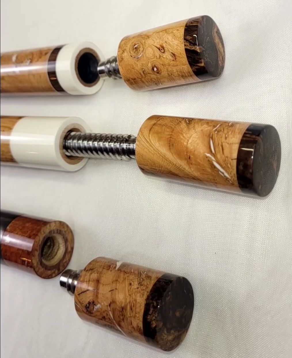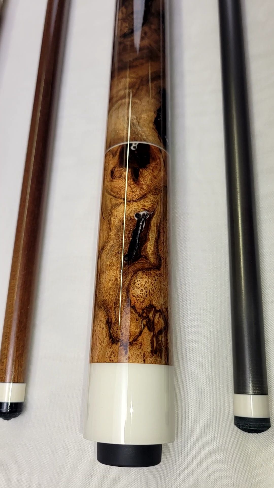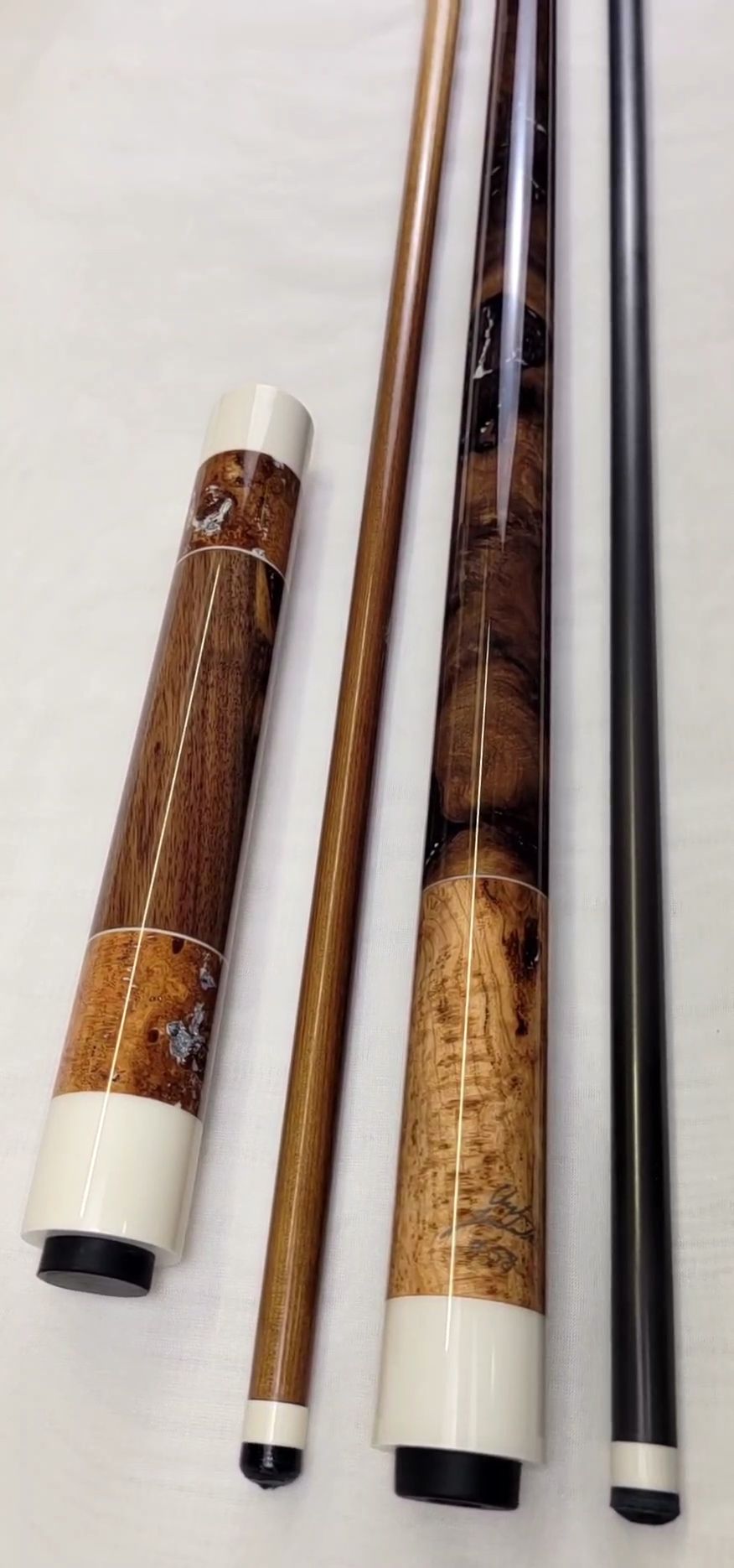 Hello, I’m Clayton Lindemuth, the grit lit author responsible for the Baer Creighton series and more. I started building cues as a way to keep the creative engines going while waiting on the muse to strike, and now I spend almost all my time in the shop. I focus on spalted, live edge, and burl cues that I build from hardwoods I harvest, process, and stabilize myself, drawn from the woods around me in Hormtown, Pa.