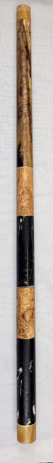 I made my second limited edition batch in response to a request that I do more out of non-dyed stabilized wood. All of the Beatitudes butts began as a single piece of spalted wood long enough to be both a forearm and butt sleeve. Some were long enough to also offer an extension as an add on, if wanted. The Beatitudes Limited Edition have product numbers from LE149 to LE156. The grain in each contiguous piece is aligned even when the pieces are not contiguous, as when there is a ring set or handle in between. All of the designs were dictated by the wood itself, as my cuts were placed where I could get the straightest sections to work with.