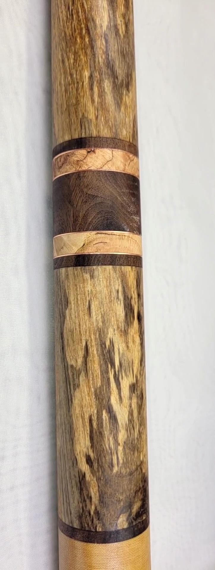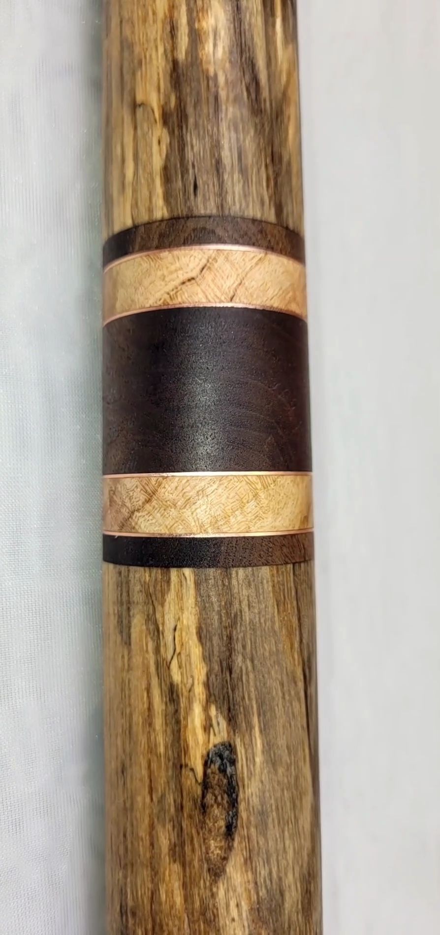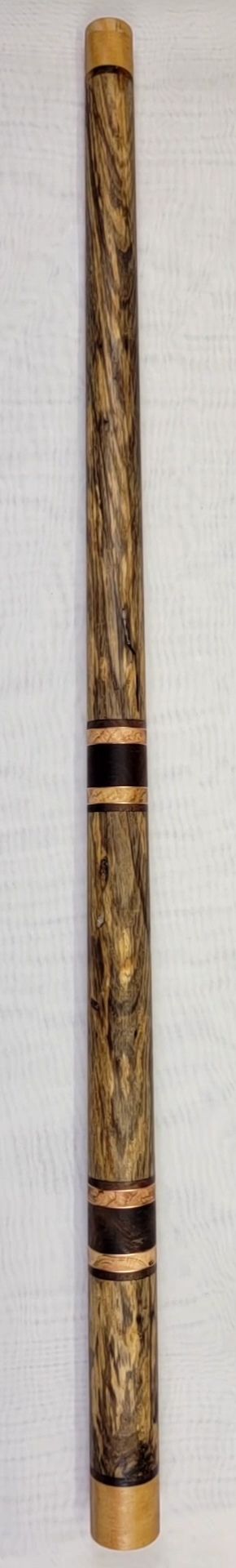 Woods Used: Spalted & Stabilized White Ash, donated by Alpaca Luke. Walnut from over at John’s hunting camp and black birch burl between copper rings