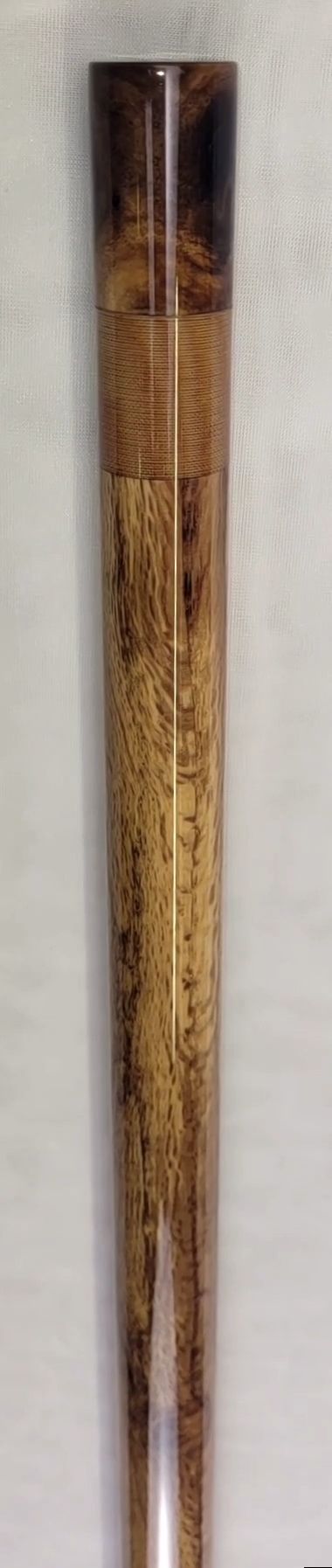 I made my second limited edition batch in response to a request that I do more out of non-dyed stabilized wood. All of the Beatitudes butts began as a single piece of spalted wood long enough to be both a forearm and butt sleeve. Some were long enough to also offer an extension as an add on, if wanted. The Beatitudes Limited Edition have product numbers from LE149 to LE156. The grain in each contiguous piece is aligned even when the pieces are not contiguous, as when there is a ring set or handle in between. All of the designs were dictated by the wood itself, as my cuts were placed where I could get the straightest sections to work with.